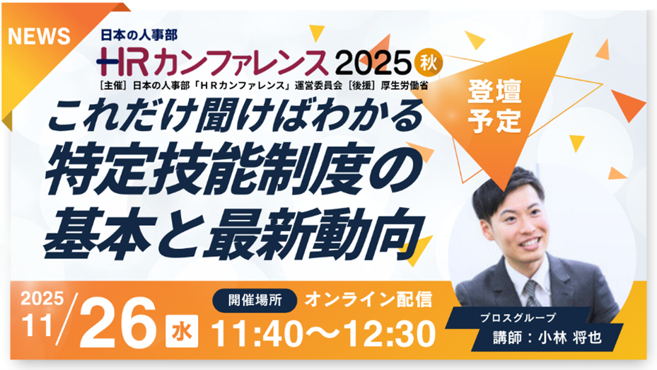 この度、株式会社HRビジョン「日本の人事部」が主催する、日本最大級のHRイベント『HRカンファレンス2025-秋-』にて、プロス株式会社が登壇いたします。